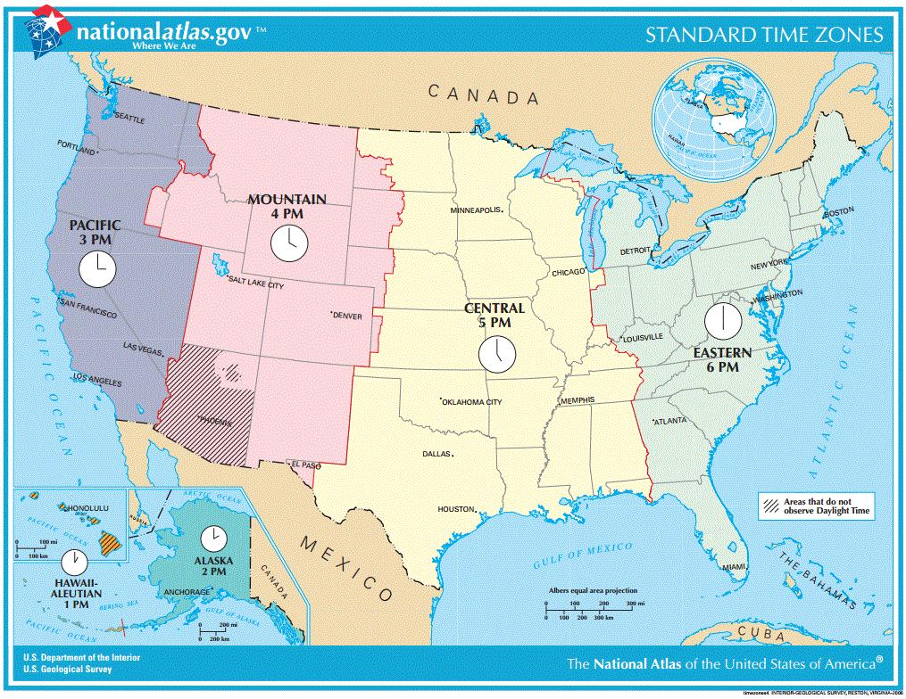USA czas mapie strefy